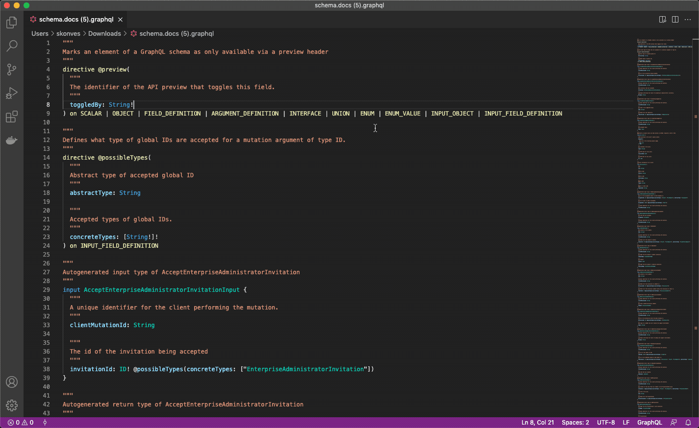 Domain Graph is available as an extension for VS Code. Use the preview button on .graphql files to open the Domain Graph visualization. Just like previewing markdown files, changes to your schema file will be reflected on the Domain Graph in real-time. Guaranteed to be the best-looking API docs on the planet or your money back!